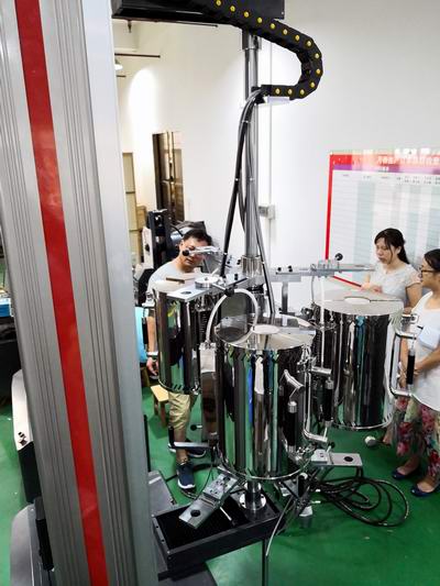 2018年8月2日,來自重慶金世利航空材料有限公司的張主任等一行三人蒞臨珠海,對前期訂購的九臺試驗機設(shè)備進行了現(xiàn)場驗收。