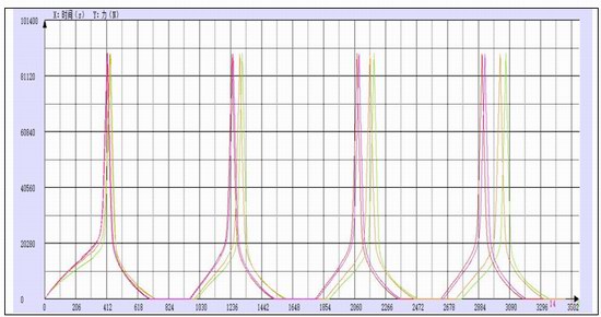 該用戶為某彈簧墊圈生產(chǎn)企業(yè)。試驗時用速度1mm/min加載到88.96kN,力值再卸載到0N,重復(fù)3次;再用速度1mm/min加載到88.96kN,到88.96kN時這個力值位移為起點,卸載力值,位移(變形)0.76mm時,試驗結(jié)束,記錄該點的力值。(該力值命名:反彈率)